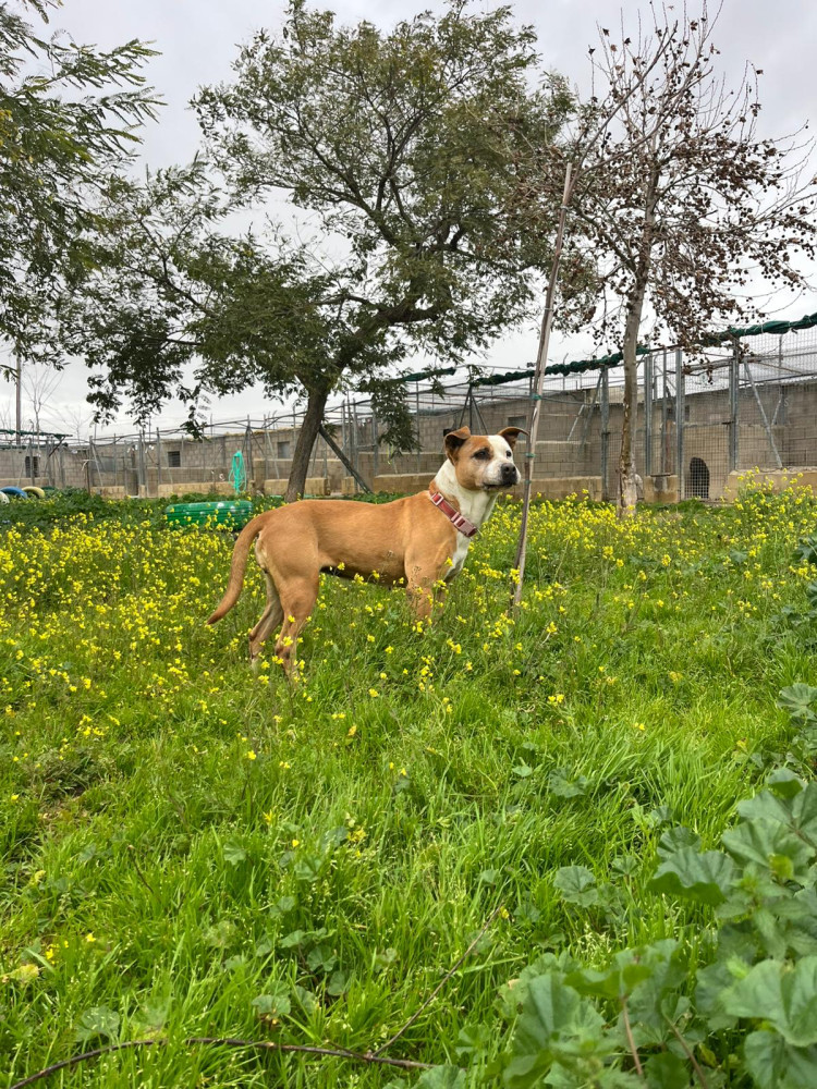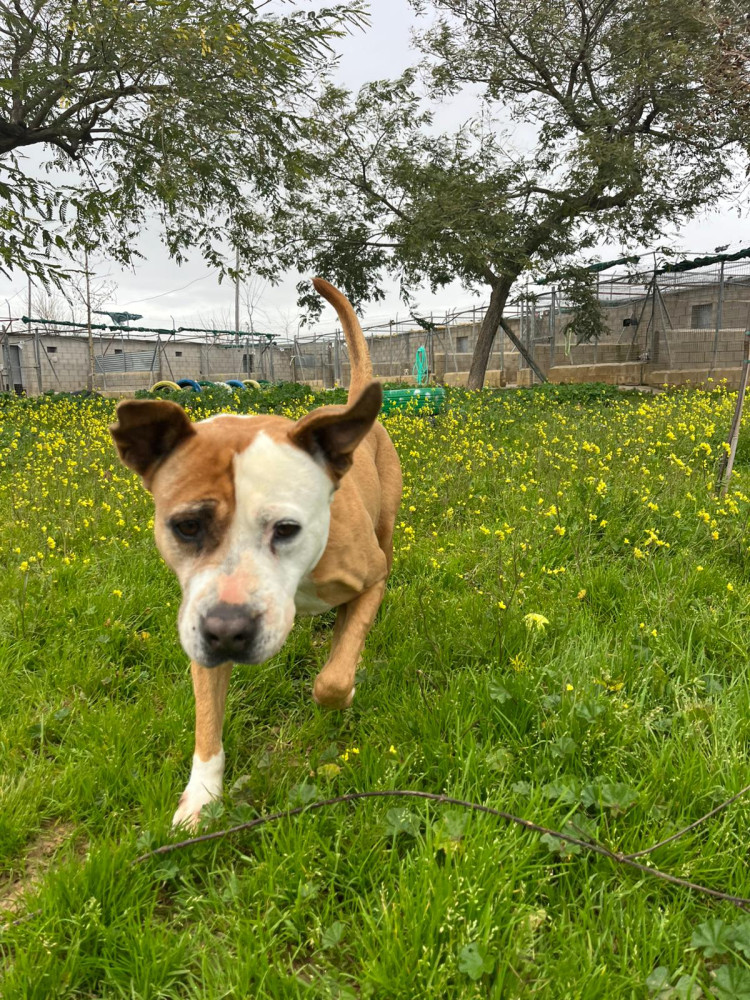 Es una perra joven y de un buen tamaño para cualquier familia. En el refugio se lleva bien con machos y hembras y sabe pasear con correa.