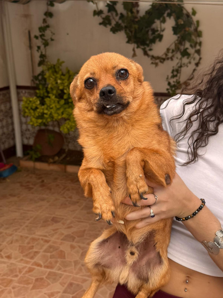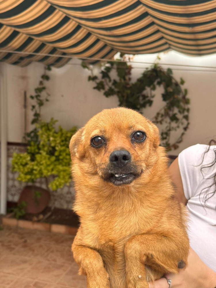 Toby es un pequeño cruce de chihuahua que ha visto cómo su mundo cambiaba por completo. Después de perder a su dueña, con quien compartió 9 años de amor y compañía, ha llegado a nosotros buscando consuelo y un nuevo comienzo. No podemos imaginar la tristeza y la confusión que habrá sentido, pero aun así, Toby sigue mostrando su nobleza y su ternura.